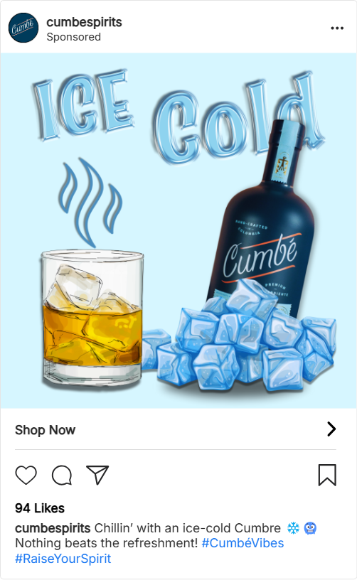 A video was created as it is one of the most effective was to increase engagement, and capture peoples attention. Given the competitive nature of the spirits industry, it seemed wise to showcase the authenticity of Cumbé in a visually appealing way. The video incorporates ingredients being shown that are a part of the Cumbé drink, transitions, and vibrant visuals to capture people’s attention better.